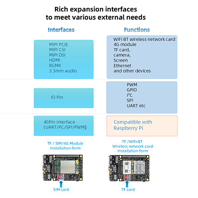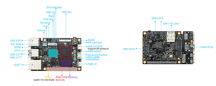 Встроенный гигабитный порт Ethernet, RGMII, USB3.0/2.0, Mini PCLE, Mini HDMI, экран MIPI и камера MIPI и другие периферийные интерфейсы, выводящие 40 -пексовые неиспользуемые контакты, богатые интерпансии для расширения, чтобы удовлетворить больше потребностей в разработке!