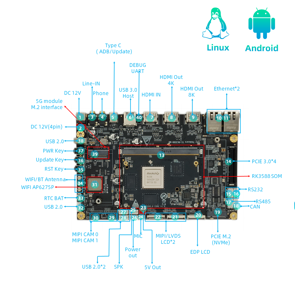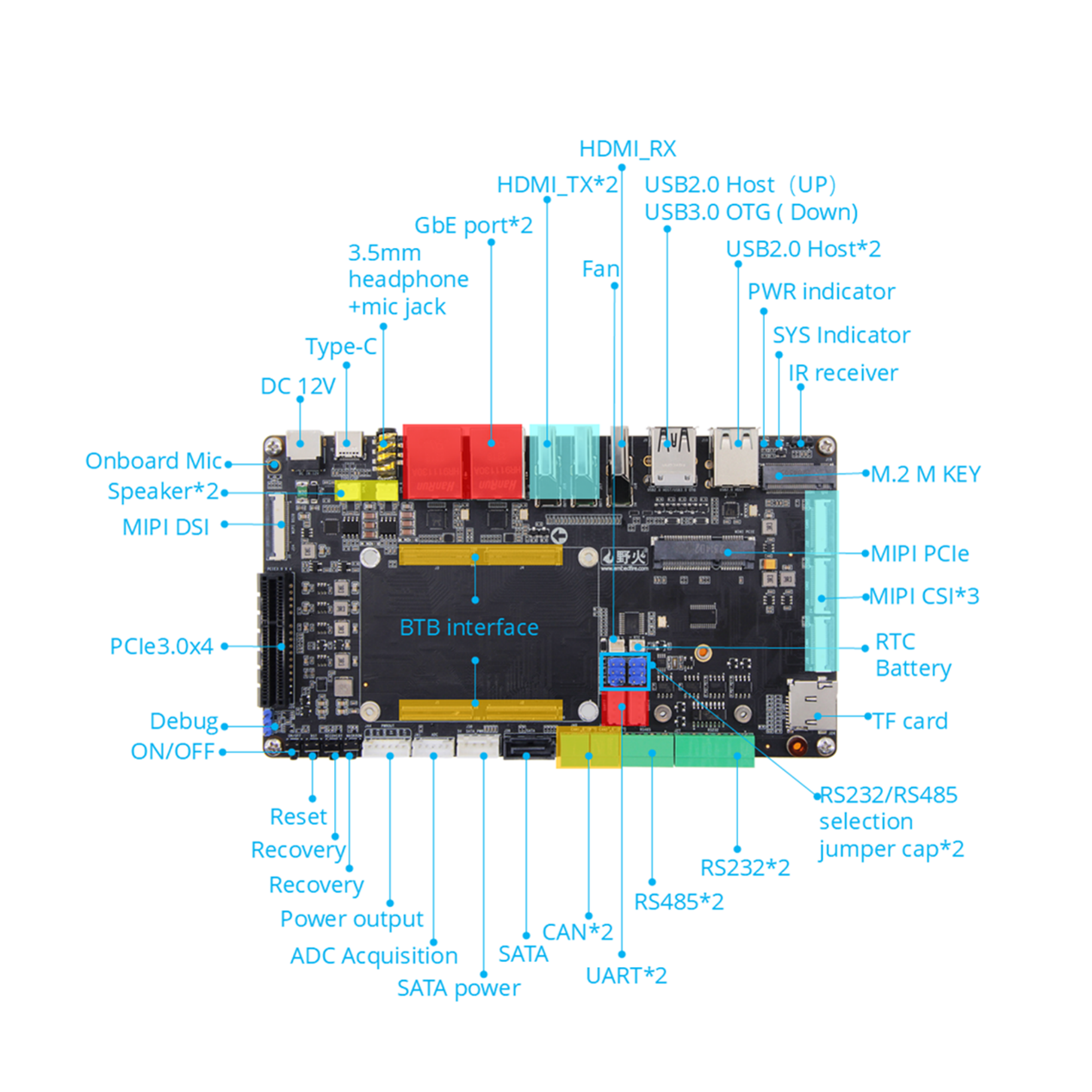 • Преимущества RK3588 SBC: по сравнению с продуктами Raspberry Pi плата разработки RK3588 предлагает превосходную производительность, более богатые интерфейсы и более мощные возможности обработки мультимедиа, что делает ее более подходящей для искусственного интеллекта и промышленных приложений.