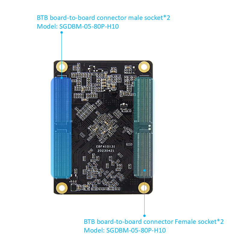 Он имеет высокую интеграцию и богатые интерфейсы расширения и оснащен двумя гигабитными портами Ethernet, HDMI, EDP, 5MINIPCLE, SATA, M.2, USB3.0, USB2.0, границей интерфейса экрана MIPI, интерфейсу MIPI Camera, Audio Interface и другими перифериями, которые могут дать полную игру в процесс и дальнейшие стыки.