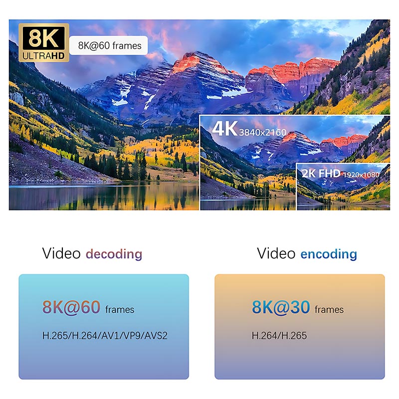 ● Кодирование и декодирование видео 8K, вывод 8K дисплея